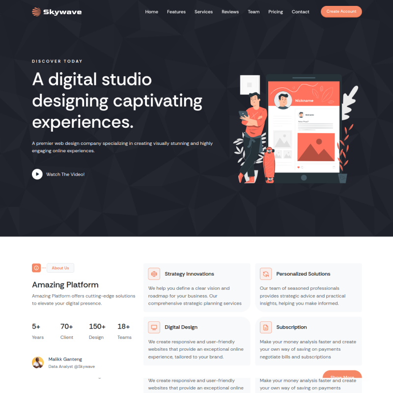 Unleash your creativity and bring your vision to life with Skywave. Our platform provides you with all the tools you need to create a stunning and professional website effortlessly.